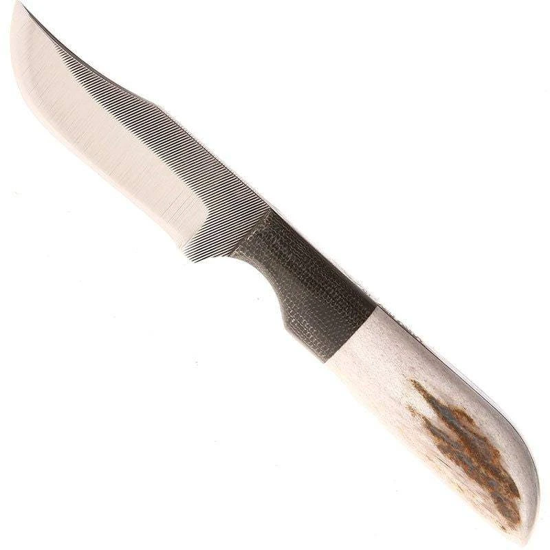 The Anza Small Clip Point Knife with Micarta Elk Handle makes a great utility or camping knife. Anza Knives are made from the finest steel files. These knives are hand made and no two are the same. Anza Knives feature full tang construction and come with a belt sheath.