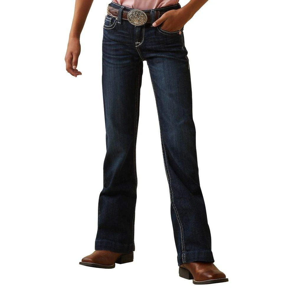 Dressed up to rodeo or dusted off for school, this versatile trouser goes everywhere, does anything. Ariat has finished it off with eye-catching contrast stitching.