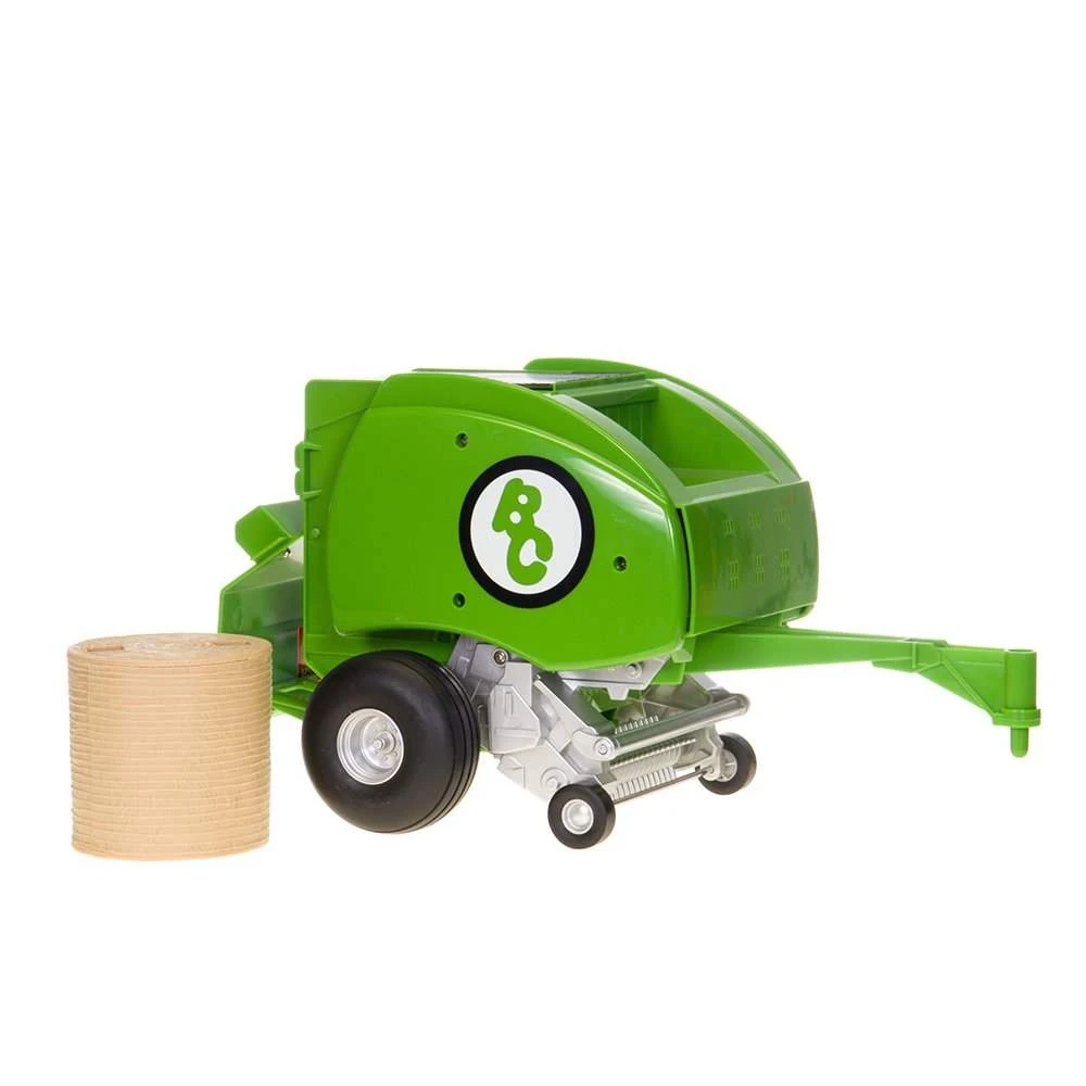 Round Baler includes 1 hay bale with holes. This 1:20 scale Round Baler can be pulled with our Tractor with the peg-and-hole hitch. The hay bale with holes will fit inside of the Rounds Baler’s hay compartment and can be rolled out, just like a real baler! The Round Baler and Hay Bale are made of our proprietary blend of plastic that creates durable and lifelike toys.Â