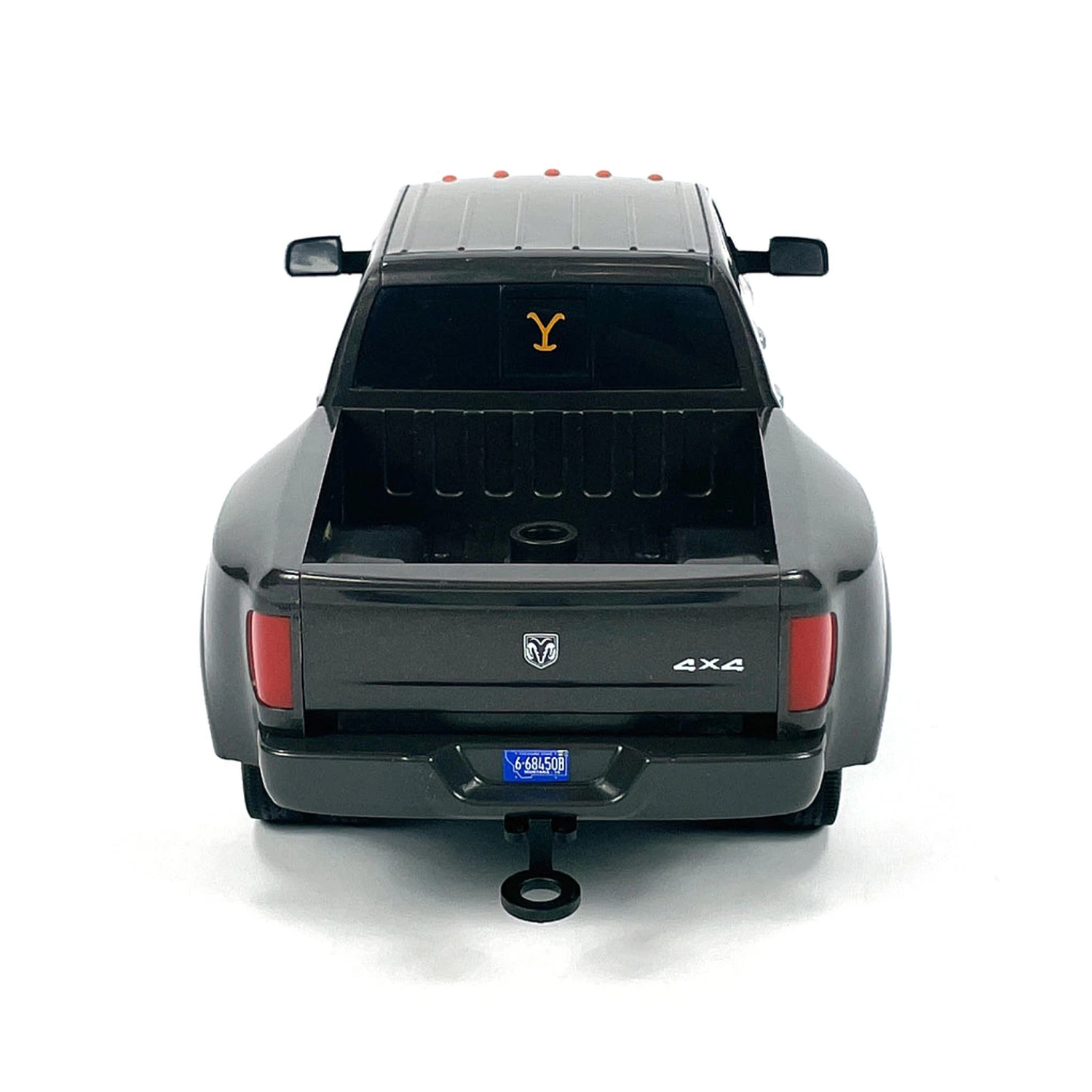 John Dutton’s Ram® 3500 Mega Cab Dually comes complete with a working tailgate and a peg-and-hole hitch that connects with our full line of farm and ranch trailers. Made from our proprietary blend of plastic that creates durable and lifelike toys, and features rubber mirrors to prevent them from breaking. Officially licensed Yellowstone product.