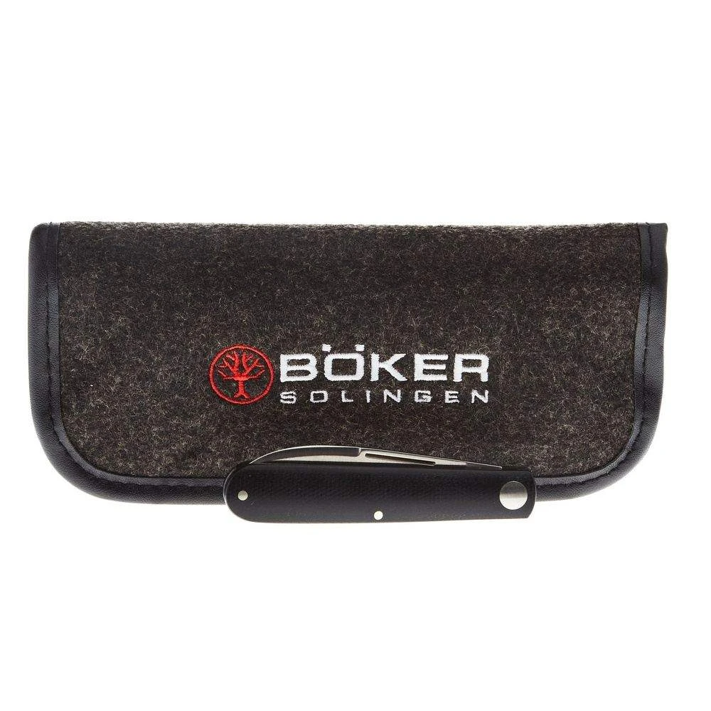This integrally constructed version of the newly interpreted Boker Barlow Prime goes without the characteristic bolsters and is instead equipped with continuous, pleasantly contoured handle scales made of black Canvas Micarta. The lightweight construction can thus completely dispense with additional metal liners.