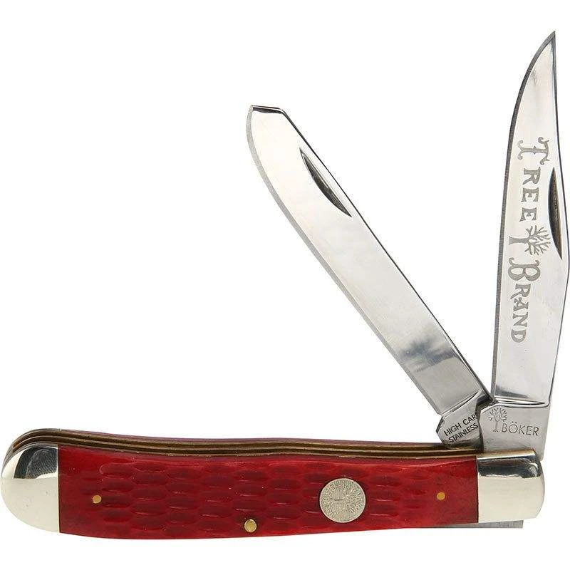 This Boker Jigged Red Bone Trapper Knife is made with stainless steel blades and measures 4.25″ closed. It also fits the NRSÂ Saddle Shop trapper sheaths!