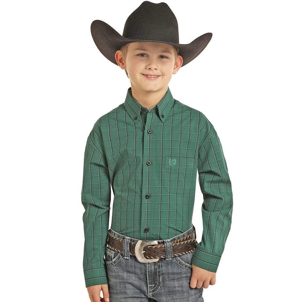 Our Boys Panhandle Green Plaid Shirt is a must have for your little one! The Green plaid gives a nice dressy look but can also be dressed down!Â