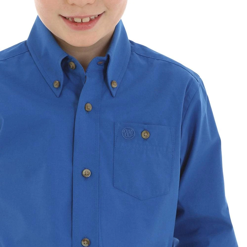 Keep your little cowboy stylish with our long sleeve solid blue button up shirt from Wrangler.Â