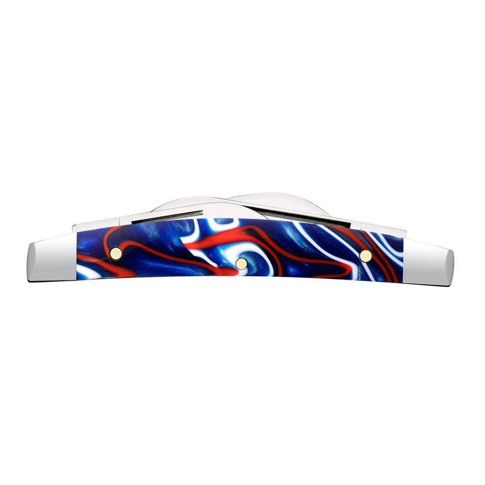 The (’68) Small Congress pocket folding knife features a sheepfoot blade with spear, pen and coping blades made of mirror polished steel, with nail nicks for opening. Two bladed versions are fitted with only sheepfoot and pen blades. Each measures 3 1/8 inches with nickel silver bolsters.