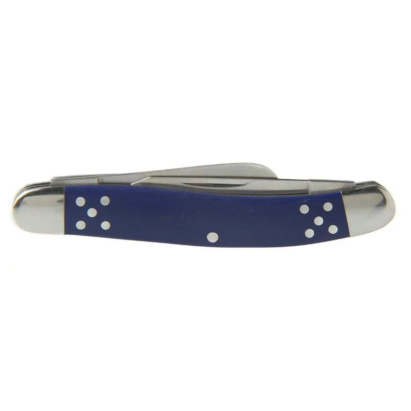 The Cattlemans Cutlery Blue Stockman Knife features a deep blue, impact-resistant, derlin handle and measures 3 1/2″ closed.