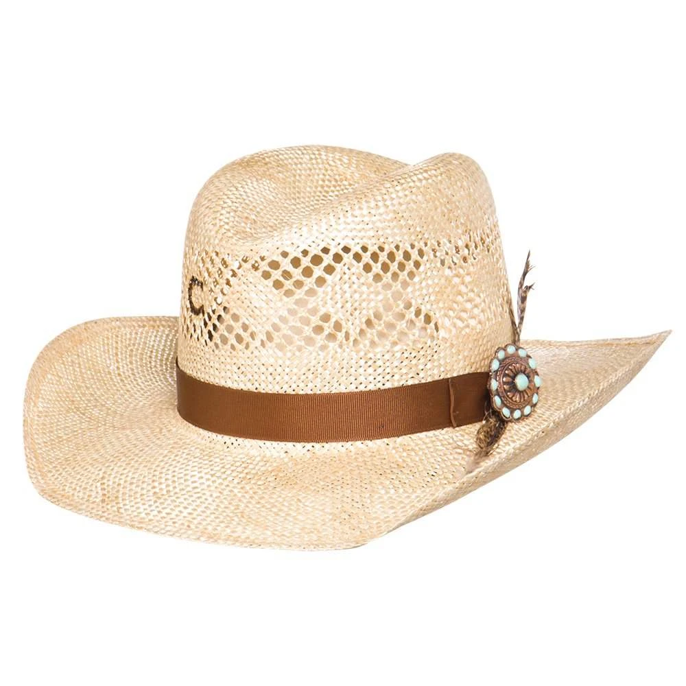 Charlie 1 Horse has added another twist on the popular Stud Finder hat by giving you options of conchos to put on that hat. It comes with a pheasant feather, turquoise concho and pistol concho.