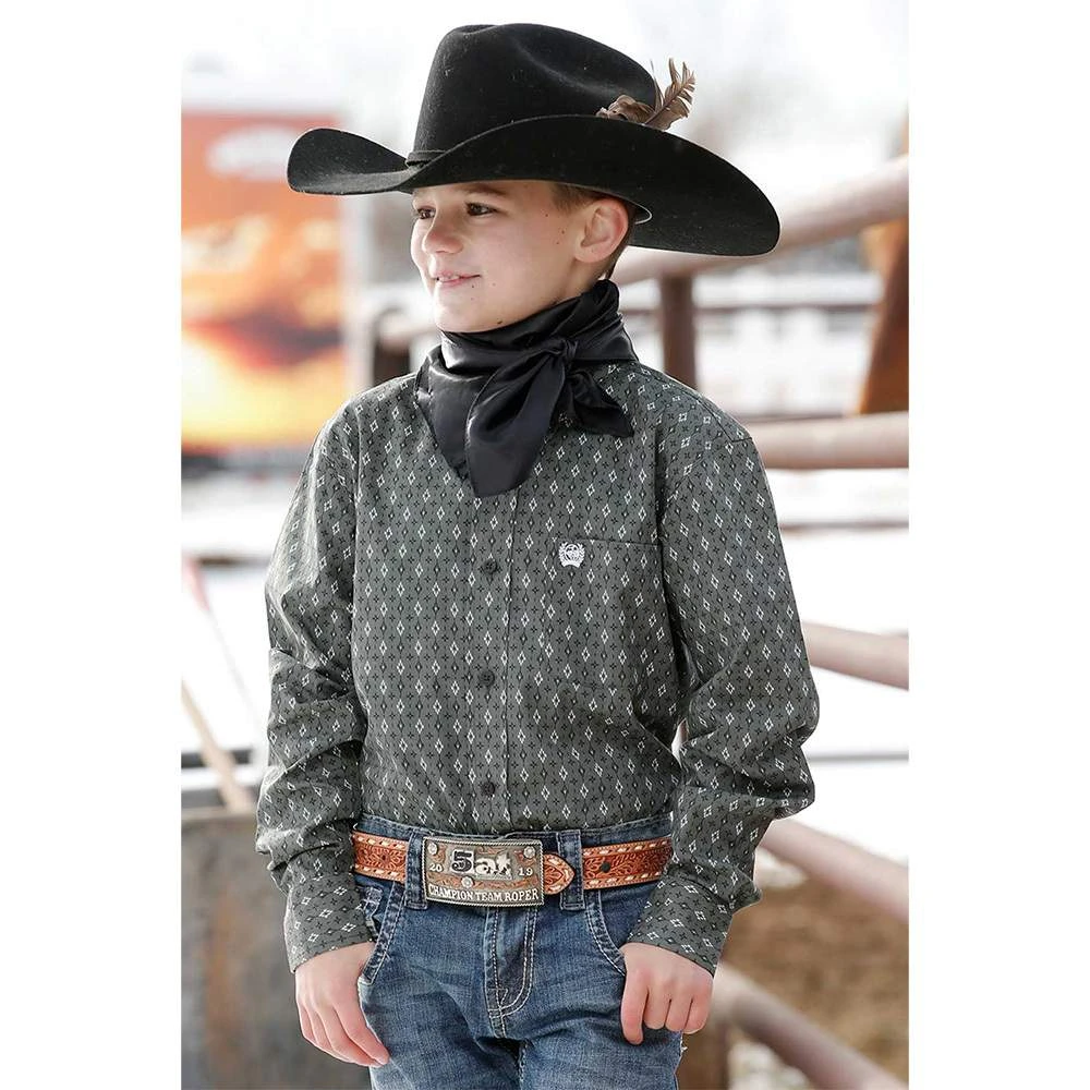 Whether he’s heading to a special event or out on a trail ride, this comfortable shirt by CINCH will handle the job. This lightweight shirt features olive printed poly-spandex construction with an open left front pocket, embroidered logo and black buttons.