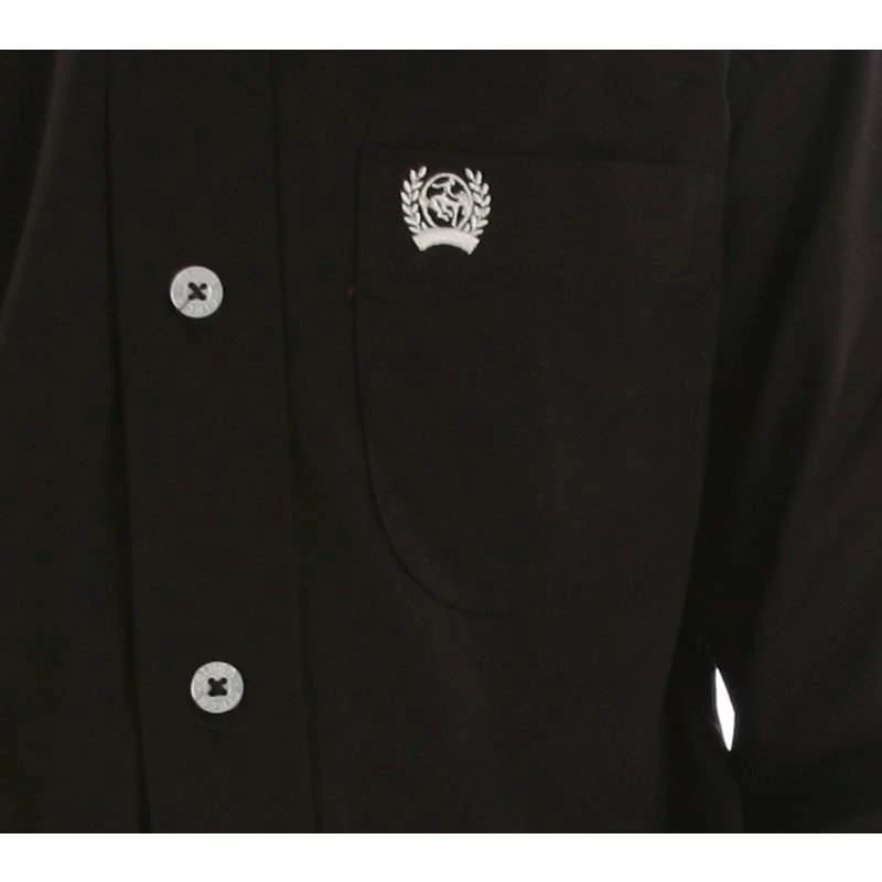 This boy’s shirt by Cinch is a long sleeve button down western shirt that is solid black. This shirt has a button down collar, so that you can secure a tie if you are dressing your little guy up for a special occasion. There is one chest pocket on the front that has a white embroidered