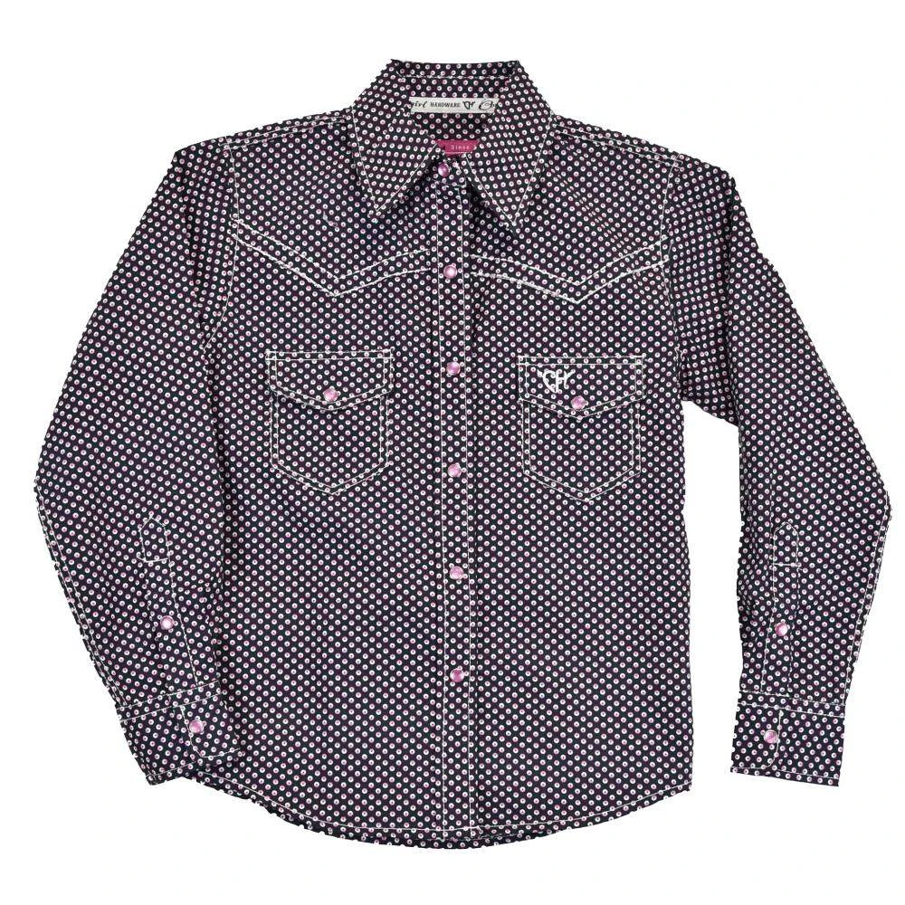 Your little girl will look stunning in this black sleek pink donut print with pink pearl snaps!