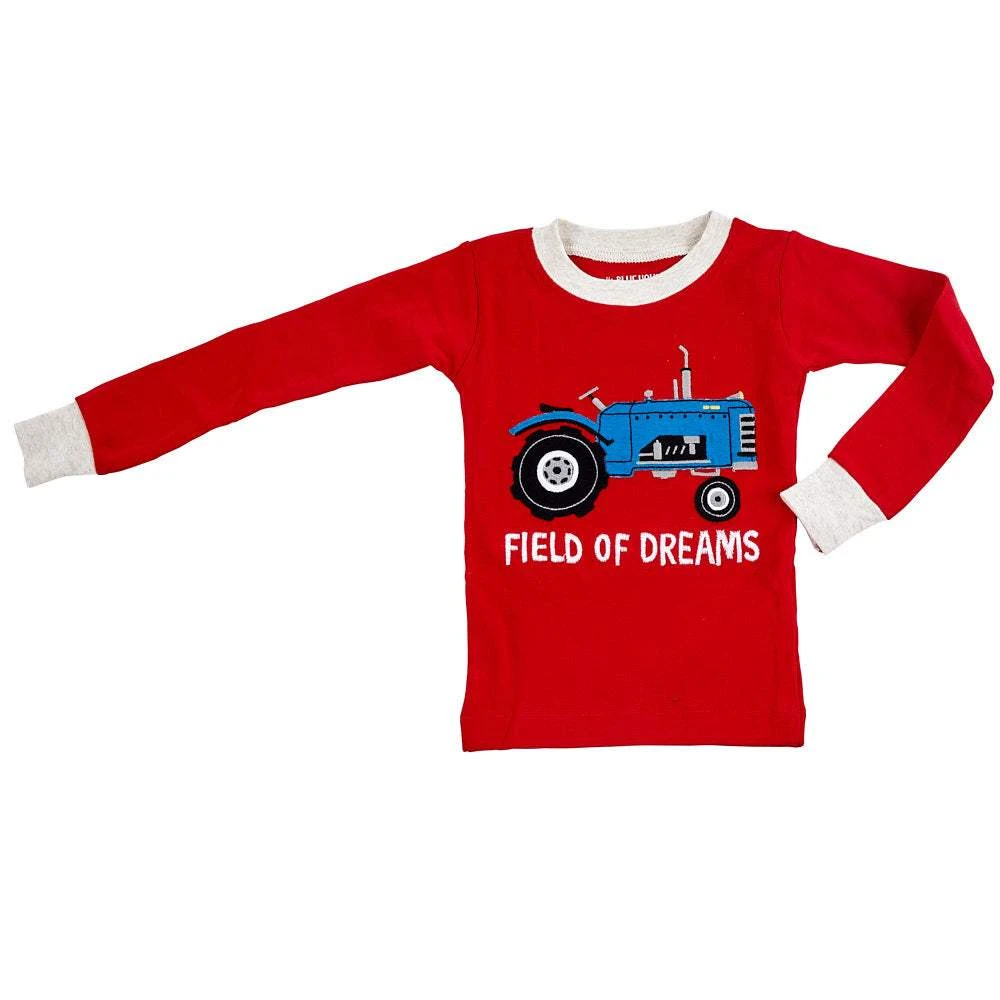 These pajamas with contrasting cuffs and an elastic waistband are just what they need to drive a tractor through a field of sweet dreams!