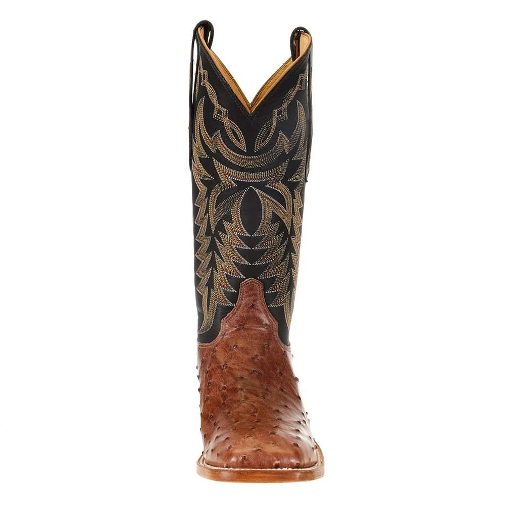 Check out the new Pascoe rum brown full quill ostrich boot from Justin Brands. This beautiful rum brown foot is paired with a 13″ black chester top. It has gold and brown tones in the stitch pattern to add a little pop of color.