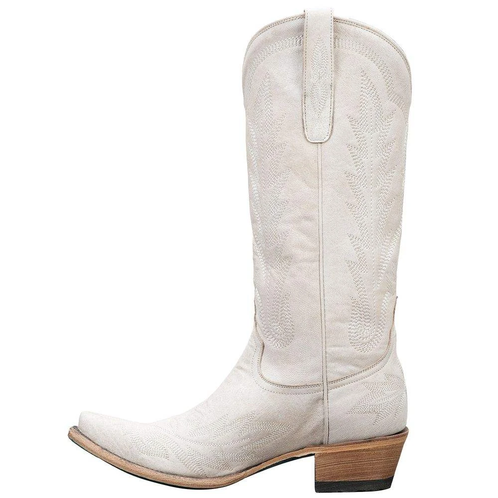 Heirloom quality boots with a core western influence. The classic snip toe profile is embroidered to perfection with a twist on traditional flame stitch. Ceramic crackle finish makes this a perfect fit for weddings to girl’s night out.
