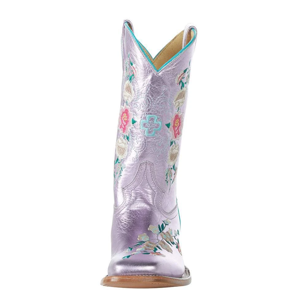 These Kid’s Macie Bean Pink Metallic Rose Garden Cowgirl Boot appeal to the girly side in your little cowgirl. The metallic finish and pretty flowers offer a feminine vintage feel, while the square toe and leather outsole is durable and practical. Perfect boot for your little Cowgirl!