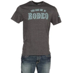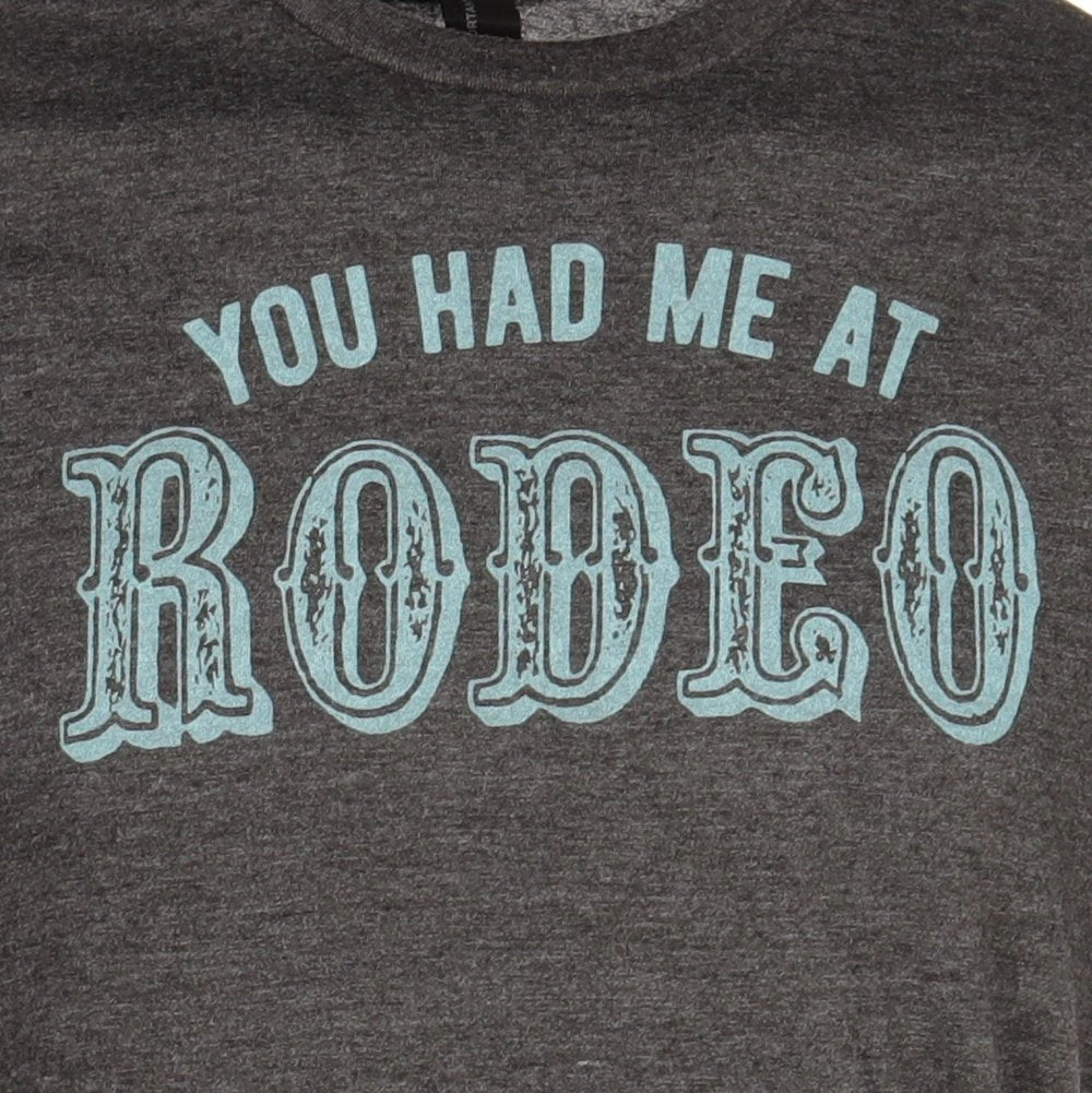 Go for a casual everyday look with our charcoal you had me at rodeo tee from Mason Jar Label!