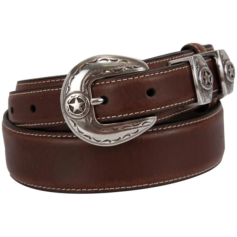 A simply classic mens brown belt that is completed with a silver buckle that has the Ranger Star design.
