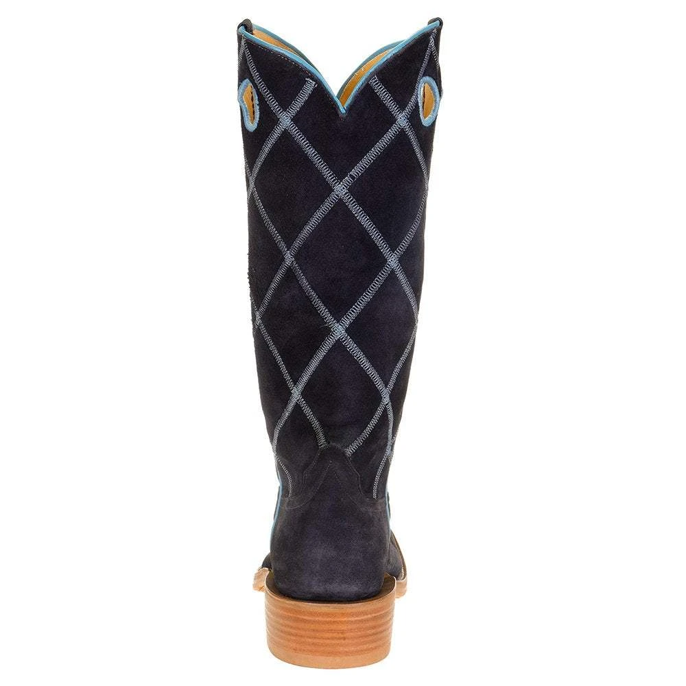 NRS has teamed up with Rios of Mercedes in making these fun throw back boots. This pair navy mustang roughout boots have a 15″ navy mustang top with a fun zig-zag stitch pattern on the upper to add some stability and a pop of color. They are made with a cushioned insole, spur rest, cutter toe, neo mid and tan outsole for a little more durability.Â