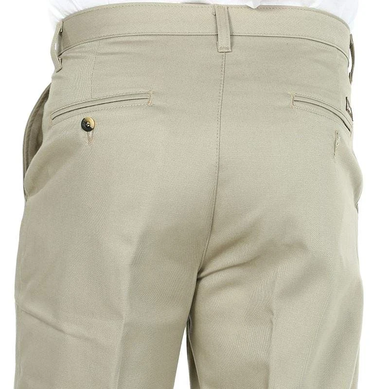 The flat front, relaxed fit casual pants are more comfortable through the waist and reece hip pockets with button thru closure. Stain repellant and wrinkle resistant.