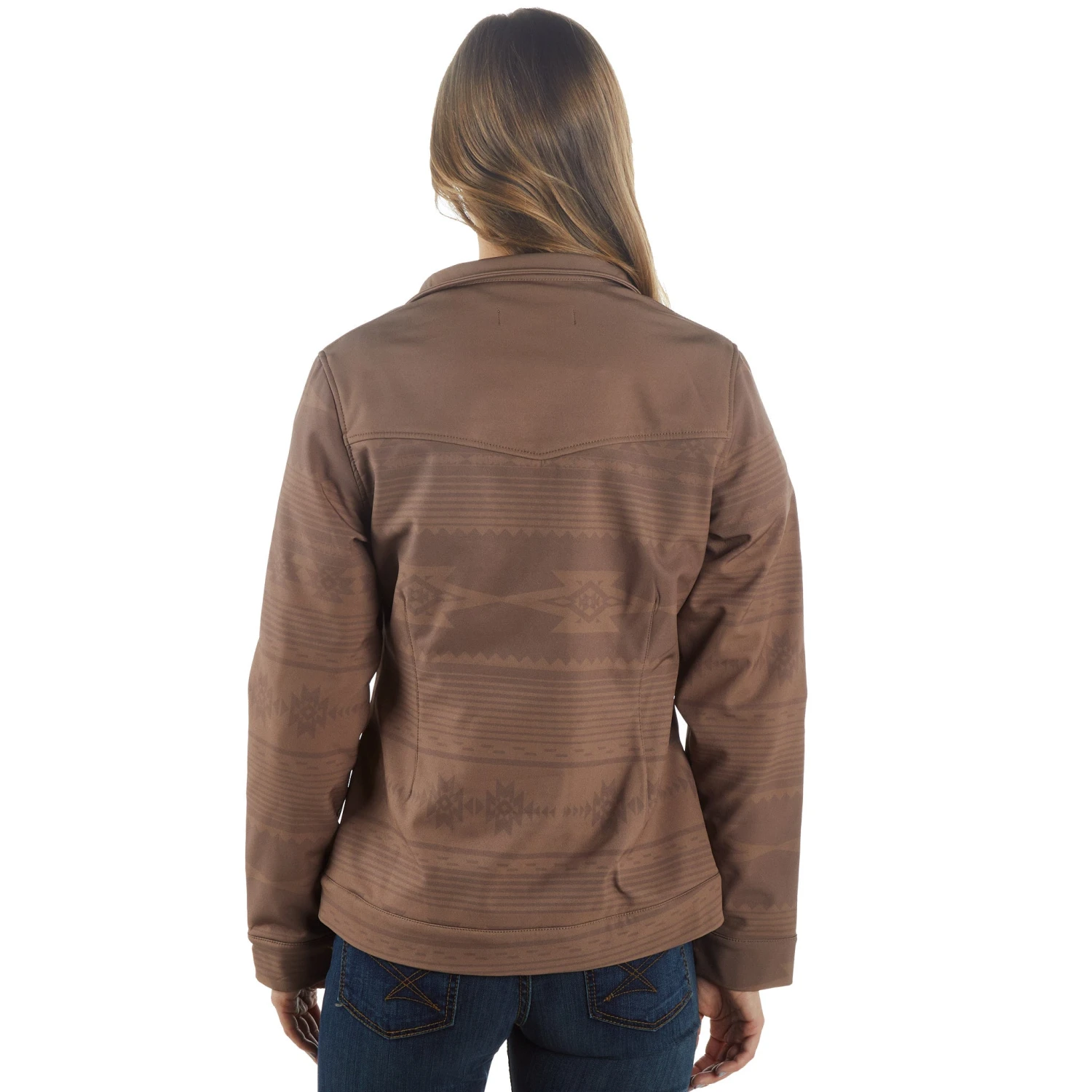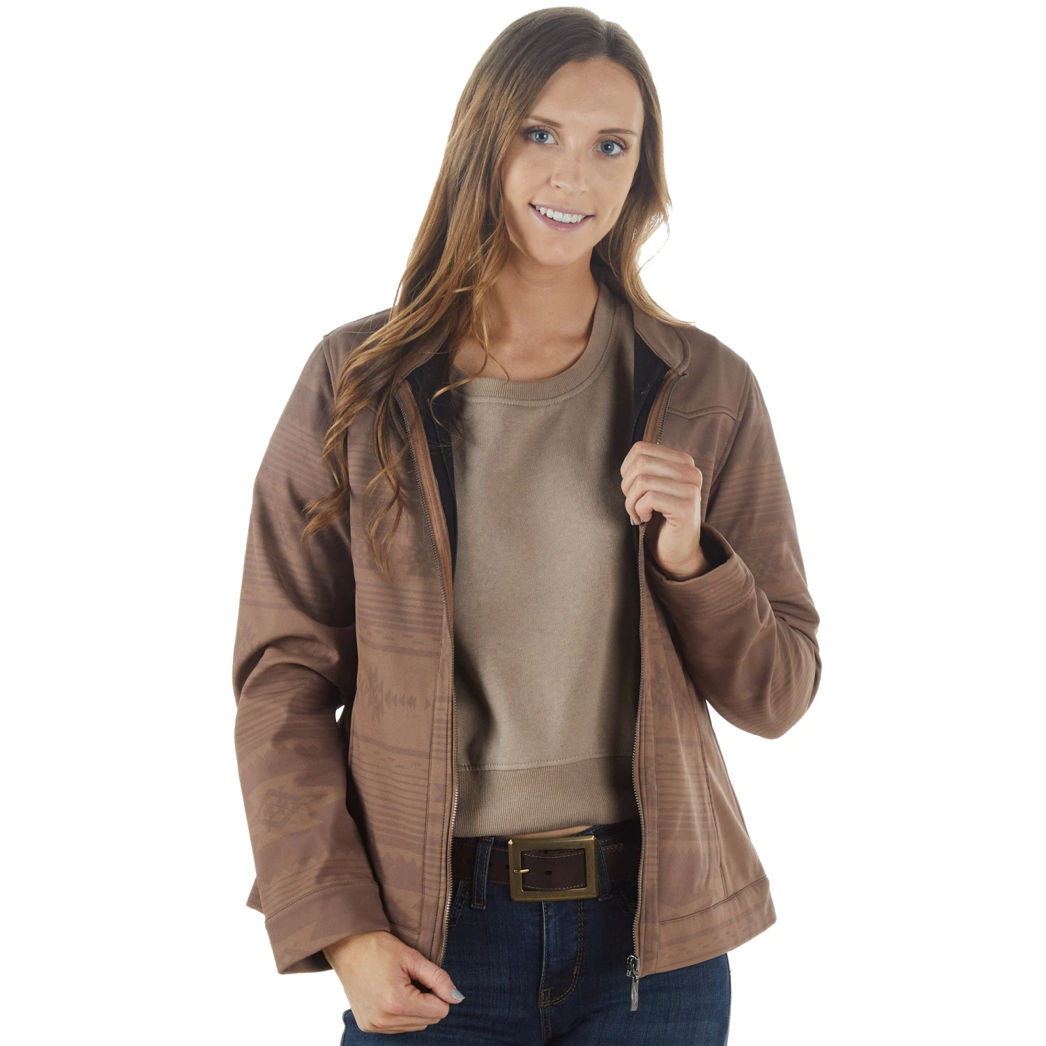 A feminine coat for every outfit made of functional soft shell material and featuring a center front zipper closure, front pockets, and a stand collar.