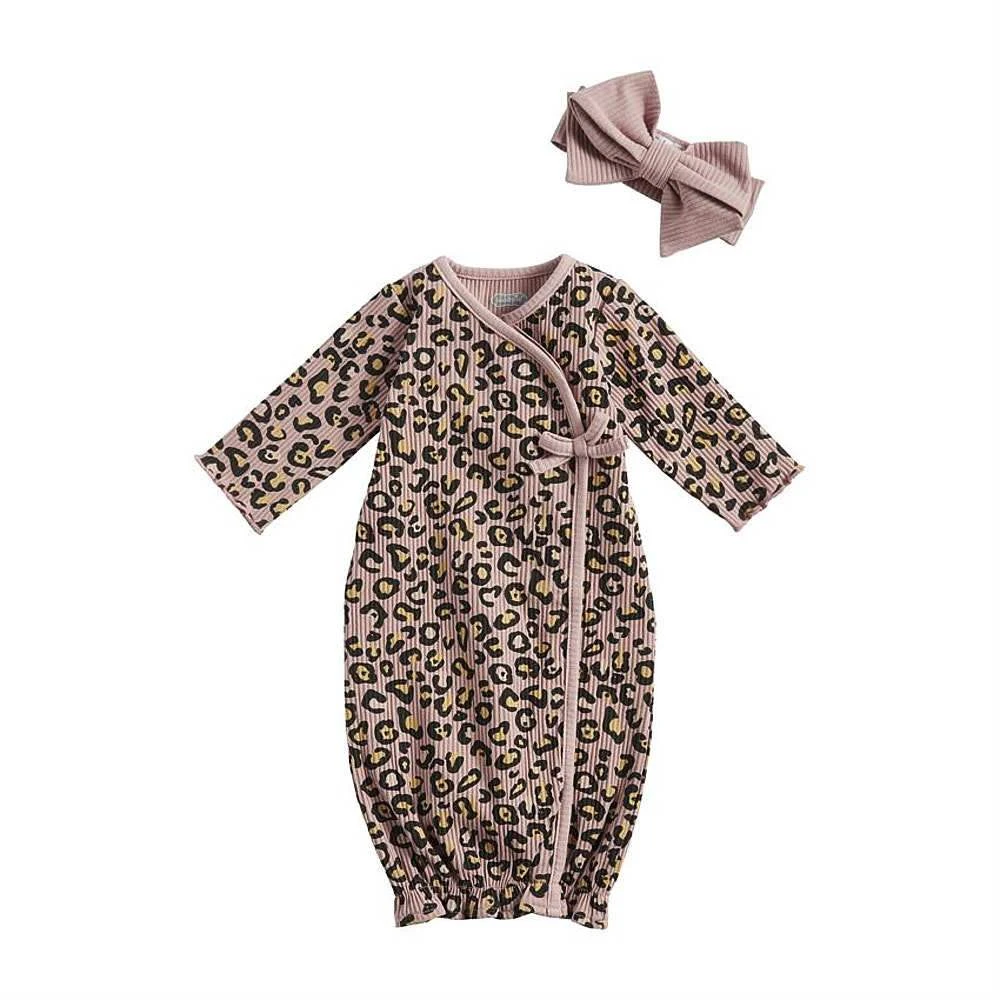 2-piece set. Cotton rib kimono style gown comes with bow headband.