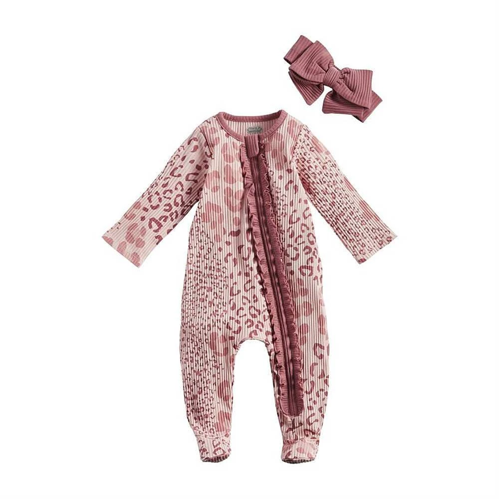 2-piece set. Cotton rib footed sleeper comes with bow headband.