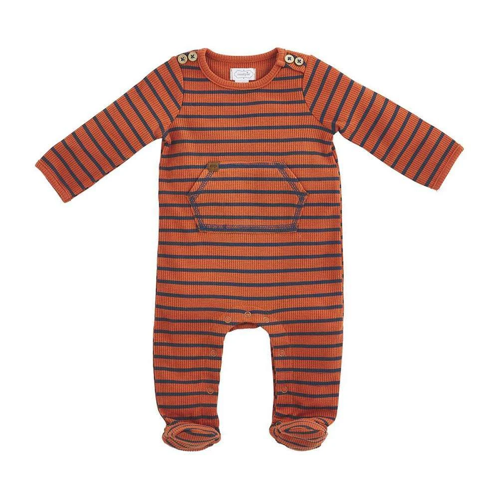 Your little dude will look super cute in this Rust and navy stripe sleeper by Mud Pie!