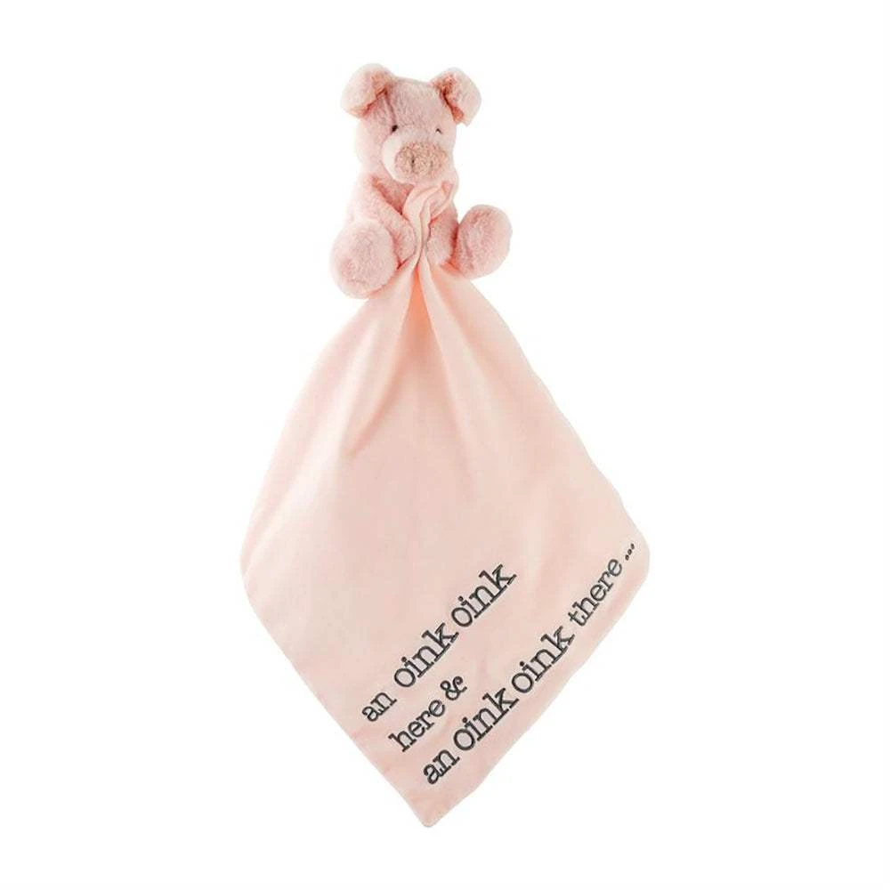 Faux fur animal plush with animal sound chip features embroidered flat minky lovey blanket.