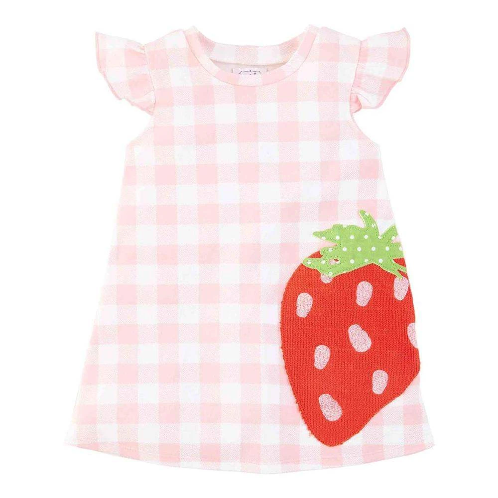 Our Strawberry Toddler Dress is the sweetest clothing piece of the season! The cotton interlock t-shirt dress features flutter sleeves. The toddler dress features a pink and white gingham pattern with a strawberry applique on it. This is perfect for springtime and summertime adventures!