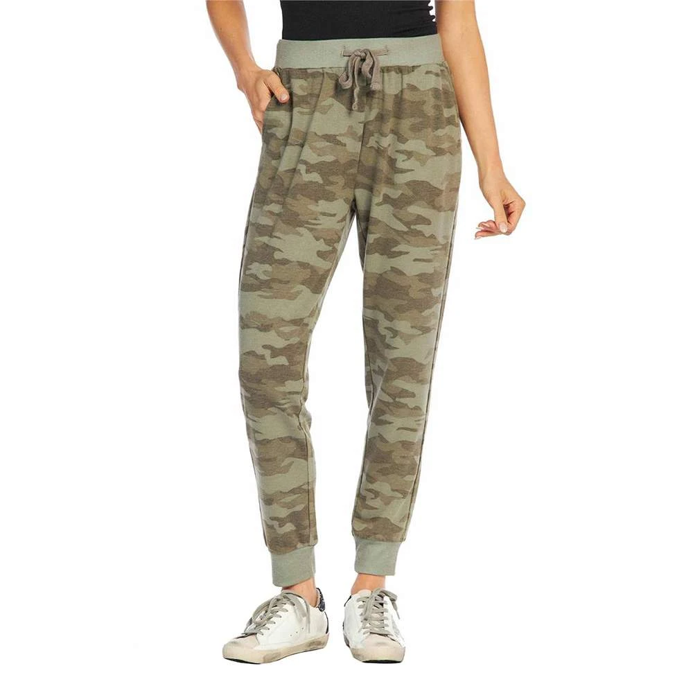 French terry joggers feature side pockets, elastic waistband and rib binding details.
