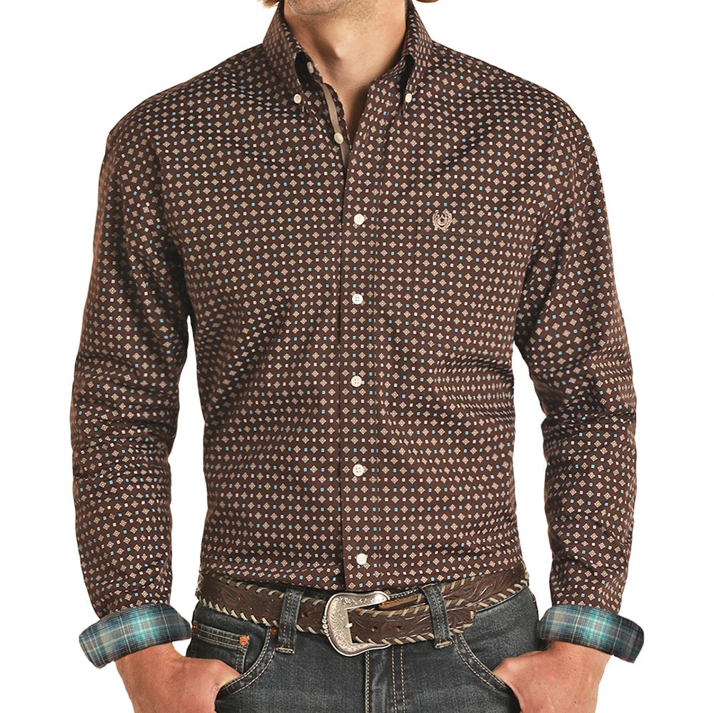 Go for a stylish look wearing our Roughstock brown printed, long sleeve buttondown by Panhandle.