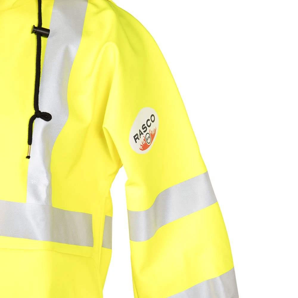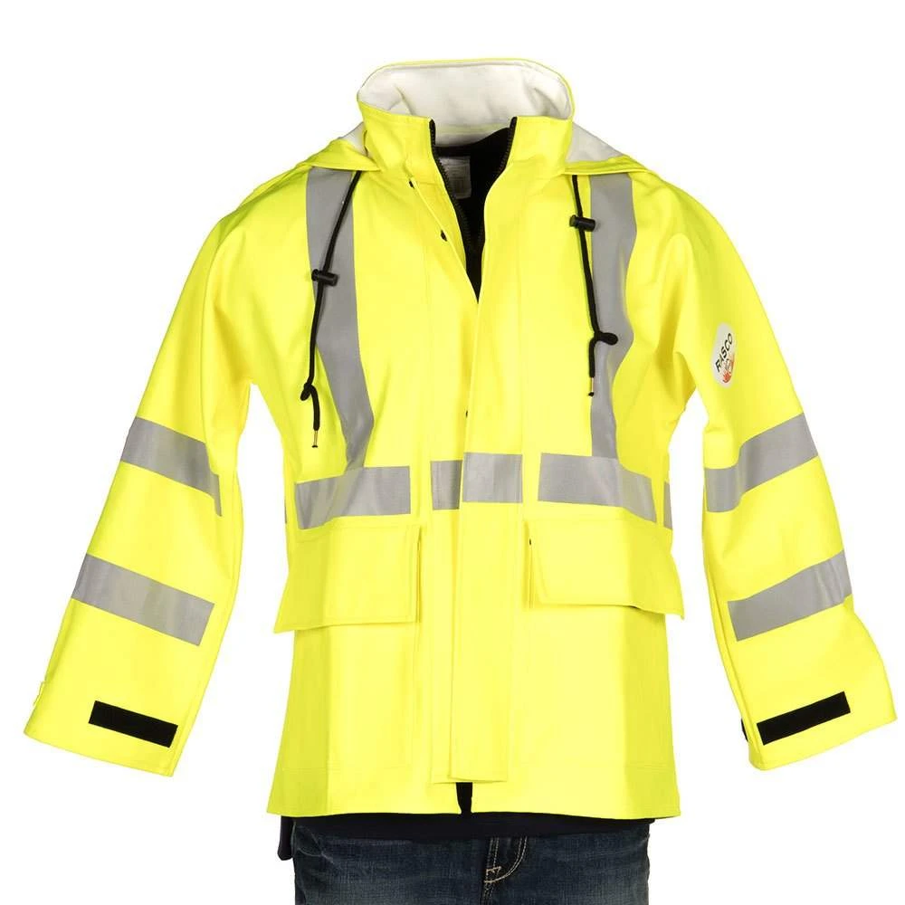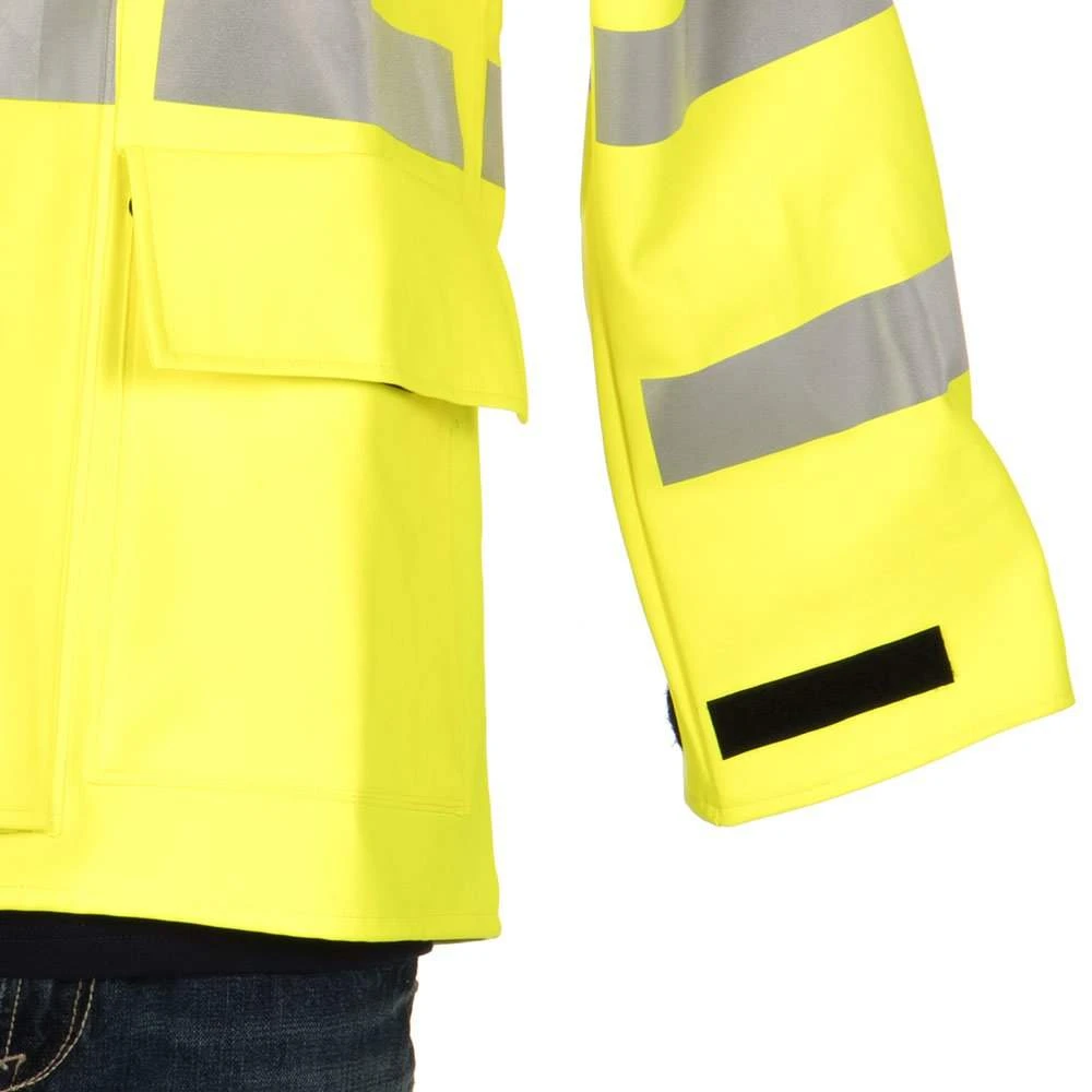 Stay dry with this hi visibility, flame resistant, rain jacket.