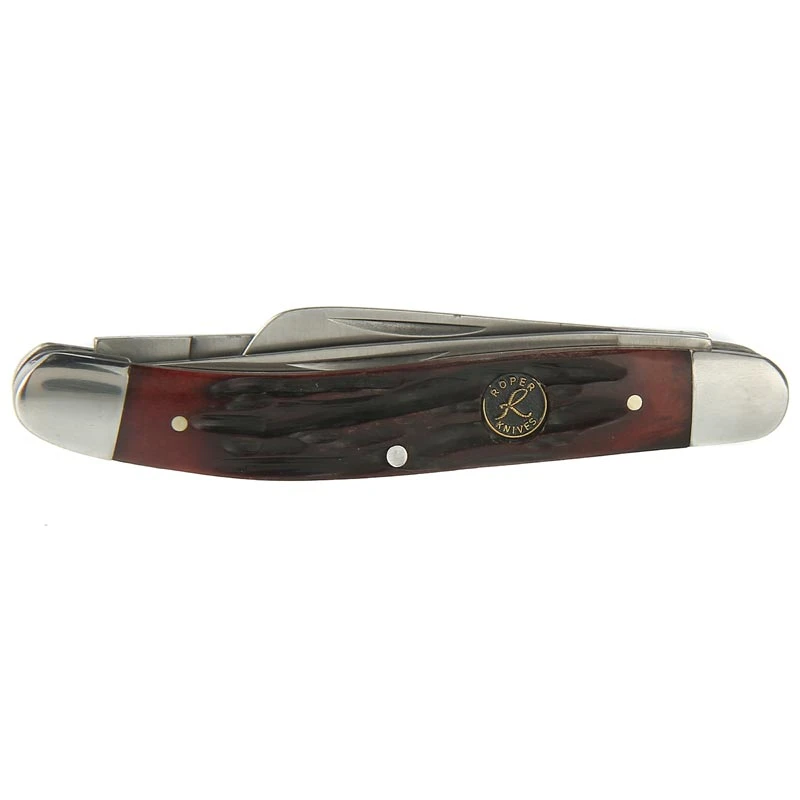 The Roper Knives Brown Bone Stockman Knife features a beautiful brown jigged bone handle and measures 3 1/2″ closed.