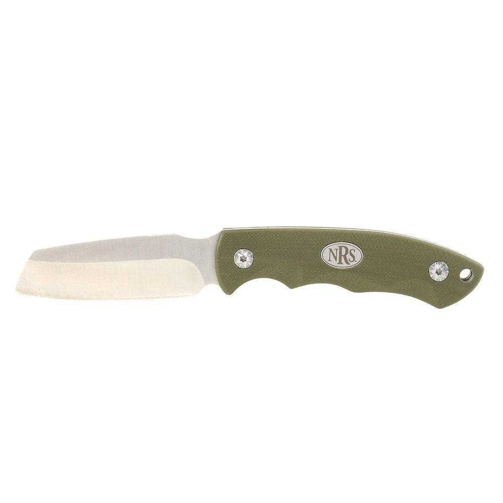 Our NRS fixed blade knife made by Roper comes in green, orange and brown with an included sheath.