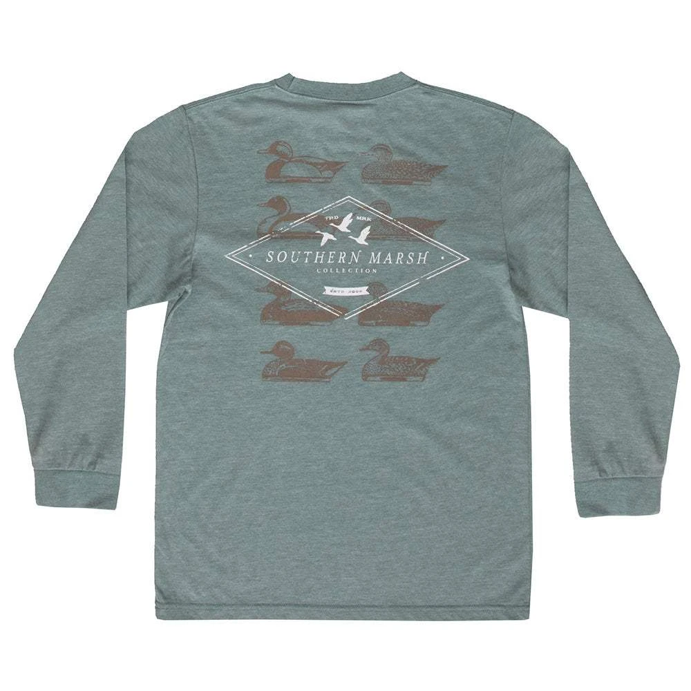 Your little one will love the long sleeve Youth Decoy Stamp SEAWASH™ tee. Made with our specially treated fabric, it’s been heavy garment washed for softness and comfort. The material is meant to fade over time to make it look like it has been their favorite long sleeve tee, season after season. The breathable, lightweight fabric makes it airy and comfortable, and is finished with a front pocket featuring our Southern Marsh mallard silhouette logo.