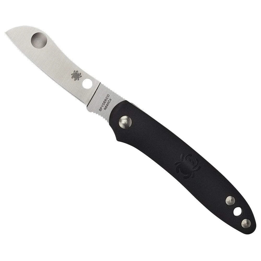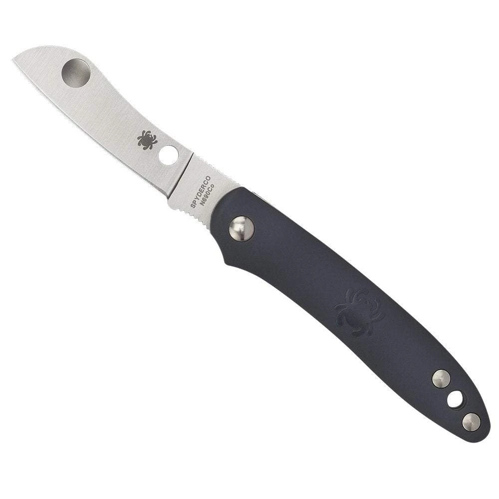 Spyderco’s Roadie is essentially an evolved version of a penknife for the modern man. It has a practical sheepsfoot style blade with a trademarked Double Dent opener for fingernail-free two-handed opening. The handle is contoured fiberglass-reinforced nylon with a notched-joint mechanism. An index-finger choil on the blade aids to prevent accidental closure and facilitates precision cuts.