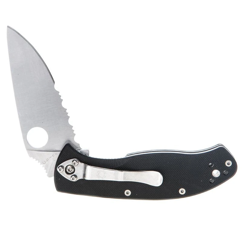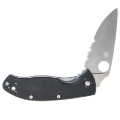 Being tenacious means one holds fast. One is persistent and cohesive. It means being tough and tireless until achieving your goal: all knife-worthy definitions for a worthy knife. The mid-size Tenacious has a black G-10 laminate handle, milled with prolonged fatigue-free cutting in mind. Tucked inside are skeletonized steel liners increasing the handle’s rigidity and strength without adding non-functioning weight or bulky thickness.  The 8CR13MOV Stainless blade is leaf-shaped and ground flat from spine to cutting edge for cutting performance. The blade’s shape coupled with an oversized Spyderco Round Hole and textured spine jimping allow you to open the blade and position your thumb on the spine in slip-proof confidence ready for work.