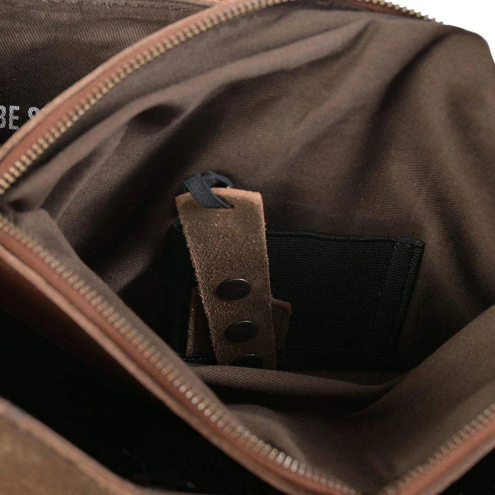 - 2 main compartments with magnetic closure and zip closure divider compartment