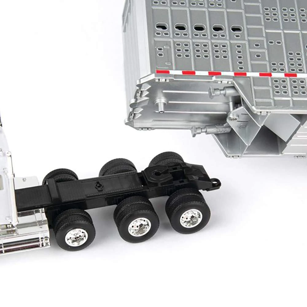 This set features a Freightliner 122SD day cab, a livestock trailer and eight head of cattle.