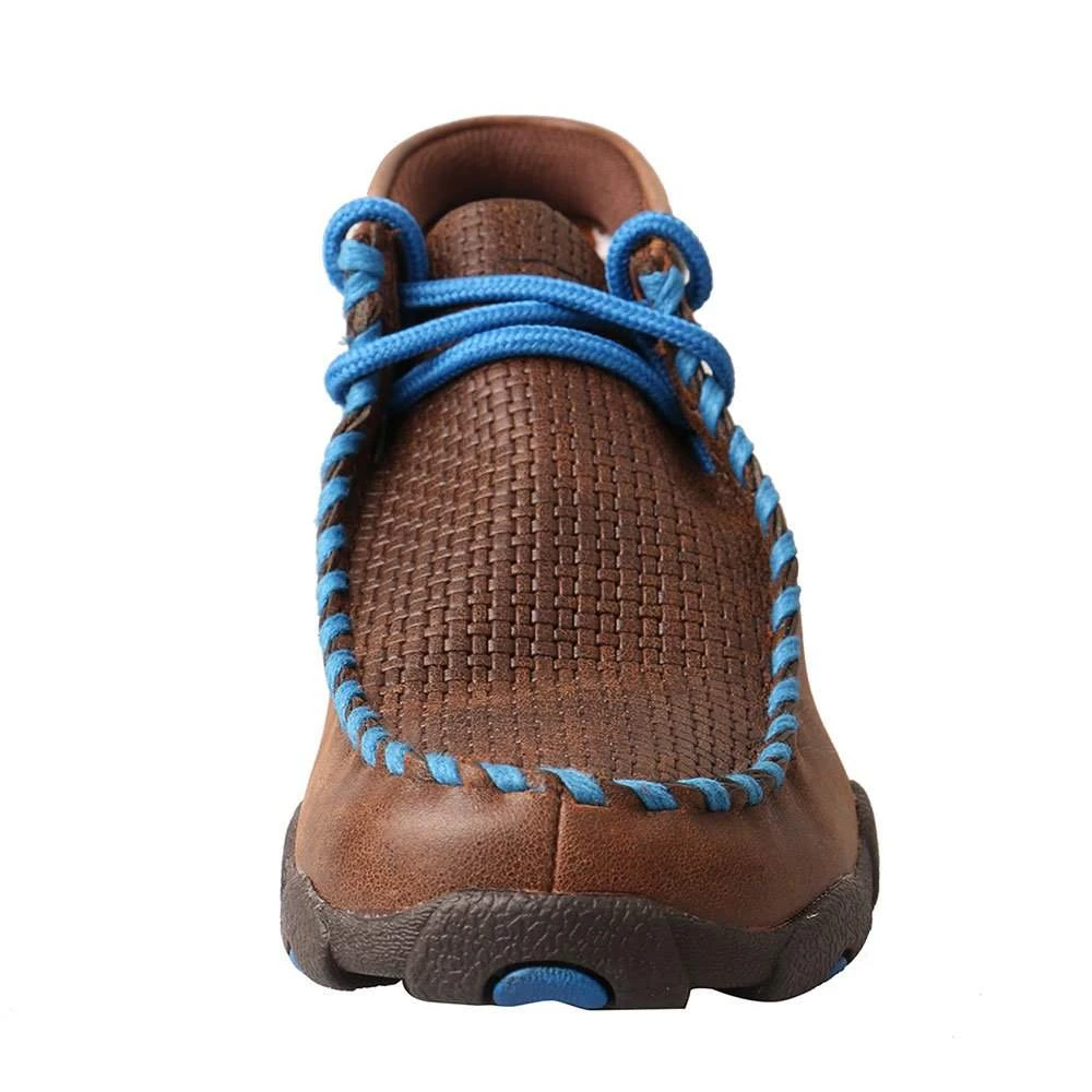 Step out in comfort and style in these brown and blue woven driving mocs from Twisted X.