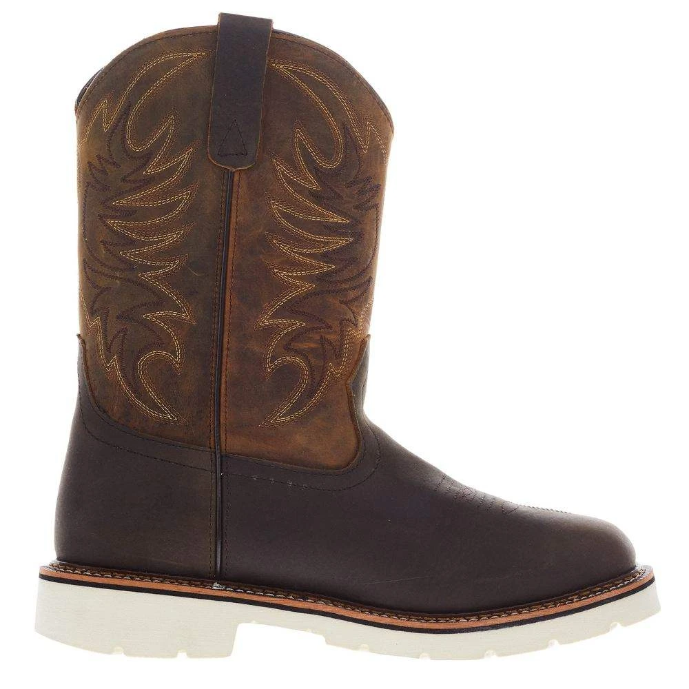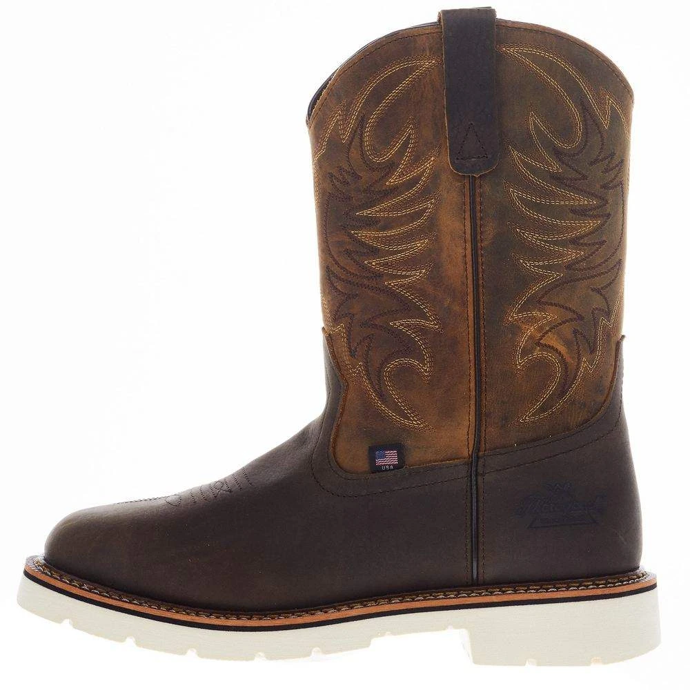 Pull on a stylish pair of work boots that delivers trusted performance with American Heritage 11 In Crazyhorse & Pebble Brown Wellington work boots from Thorogood. On the outside, you’ll enjoy the great design of the three-tone decorative shaft stitching on the Trail Crazyhorse full-grain leather upper, with a Pebble brown leather bottom. But these Wellington work boots don’t just look good – they’re made for the tough jobs