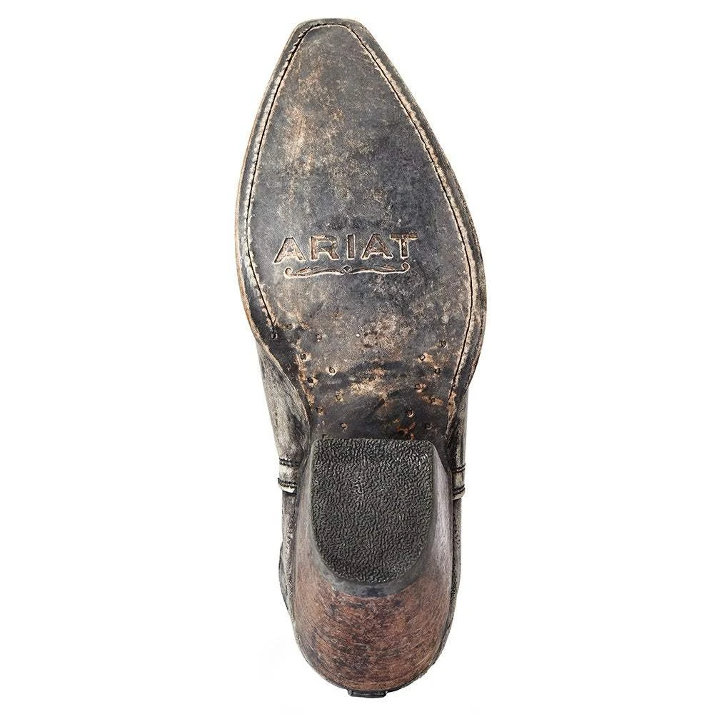 These distressed black Ariat boots are designed with exceptional craftmanship, premium- quality leather, and itricate details for authentic styling.