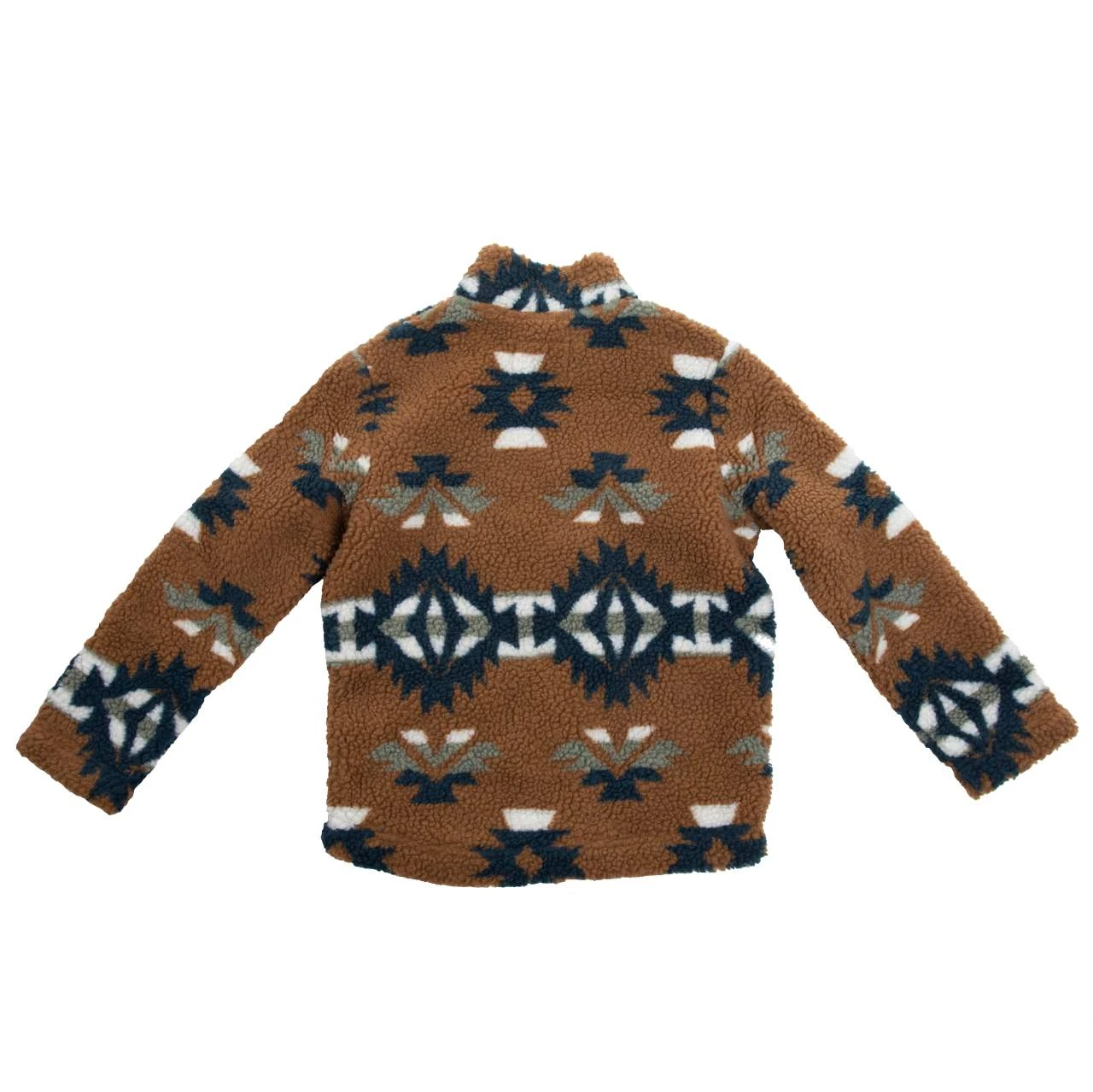 Add some style to your little one’s wardrobe wearing our Brown Aztec Sherpa Pullover by Wrangler.