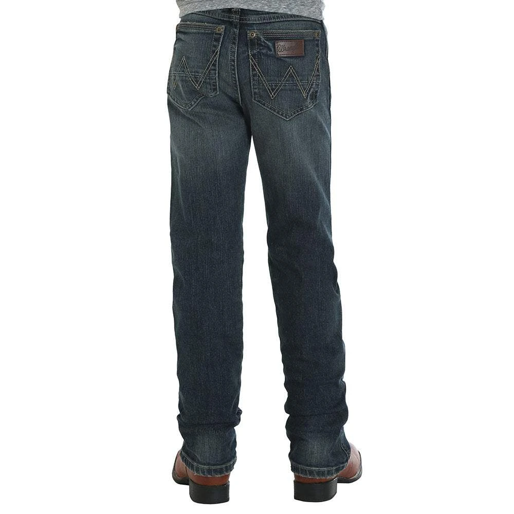 Get your little man in these Retro Slim Straight leg jeans by Wrangler that are the same high quality denim that wrangler is known for to keep him in style.