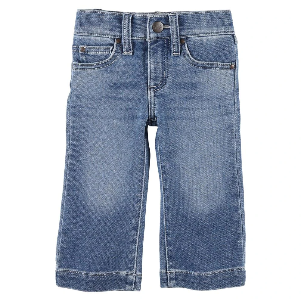 Every cowgirl-in-training has to have a classic pair of Wrangler® bootcut jeans. What better way to get her started in the world of kids’ Western wear than with this iconic silhouette? The baby girls’ jeans offer classic 5-pocket styling, a back pocket logo patch, and our signature ‘W’ embroidery. They’re made from a stretchy fabric designed to keep your baby cowgirl comfy.