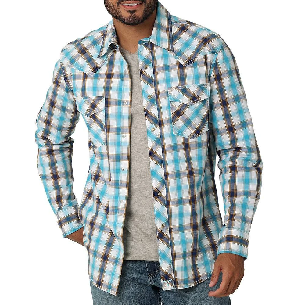 Some days are full of surprises, but the quality of your clothing should never leave you guessing. Combining classic Wrangler® styling with a contemporary look and feel, the men’s Wrangler 20X® Competition Advanced Comfort long-sleeve two-pocket western snap plaid shirt keeps you comfortable both in and out of the saddle. It features a modern fit, a spread collar, pointed yokes, contrast stitching, snap cuffs, and full snap closure at the placket. It’s crafted from cotton with just a subtle amount of stretch for full mobility. With a variety of colors to choose from, you’ll want to wear this shirt every day of the week with your favorite pair of Wrangler jeans.