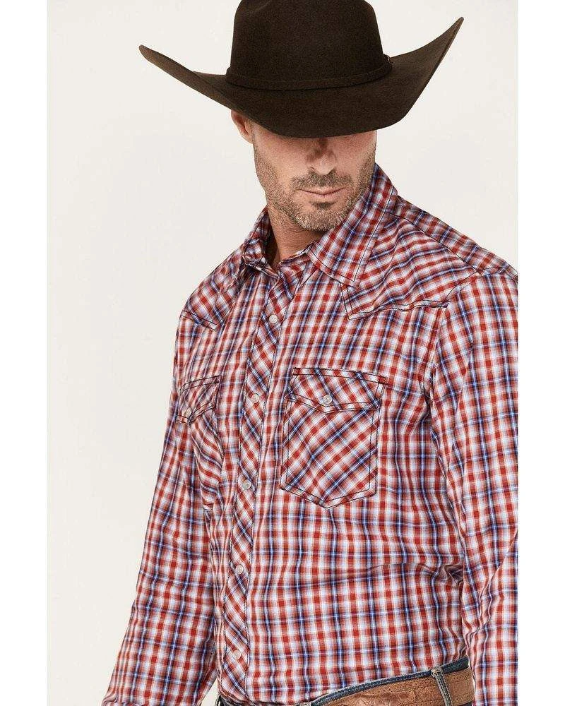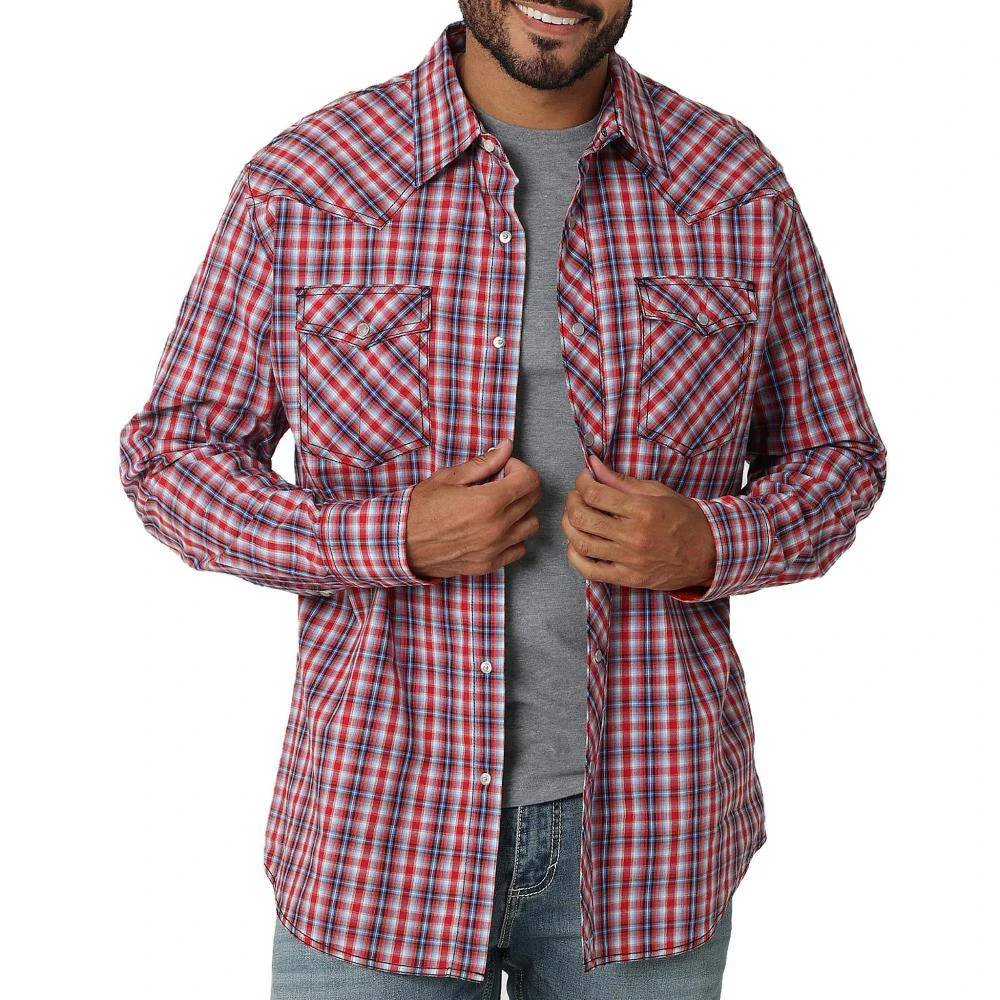 Some days are full of surprises, but the quality of your clothing should never leave you guessing. Combining classic Wrangler® styling with a contemporary look and feel, the men’s Wrangler 20X® Competition Advanced Comfort long-sleeve two-pocket western snap plaid shirt keeps you comfortable both in and out of the saddle. It features a modern fit, a spread collar, pointed yokes, contrast stitching, snap cuffs, and full snap closure at the placket. It’s crafted from cotton with just a subtle amount of stretch for full mobility. With a variety of colors to choose from, you’ll want to wear this shirt every day of the week with your favorite pair of Wrangler jeans.