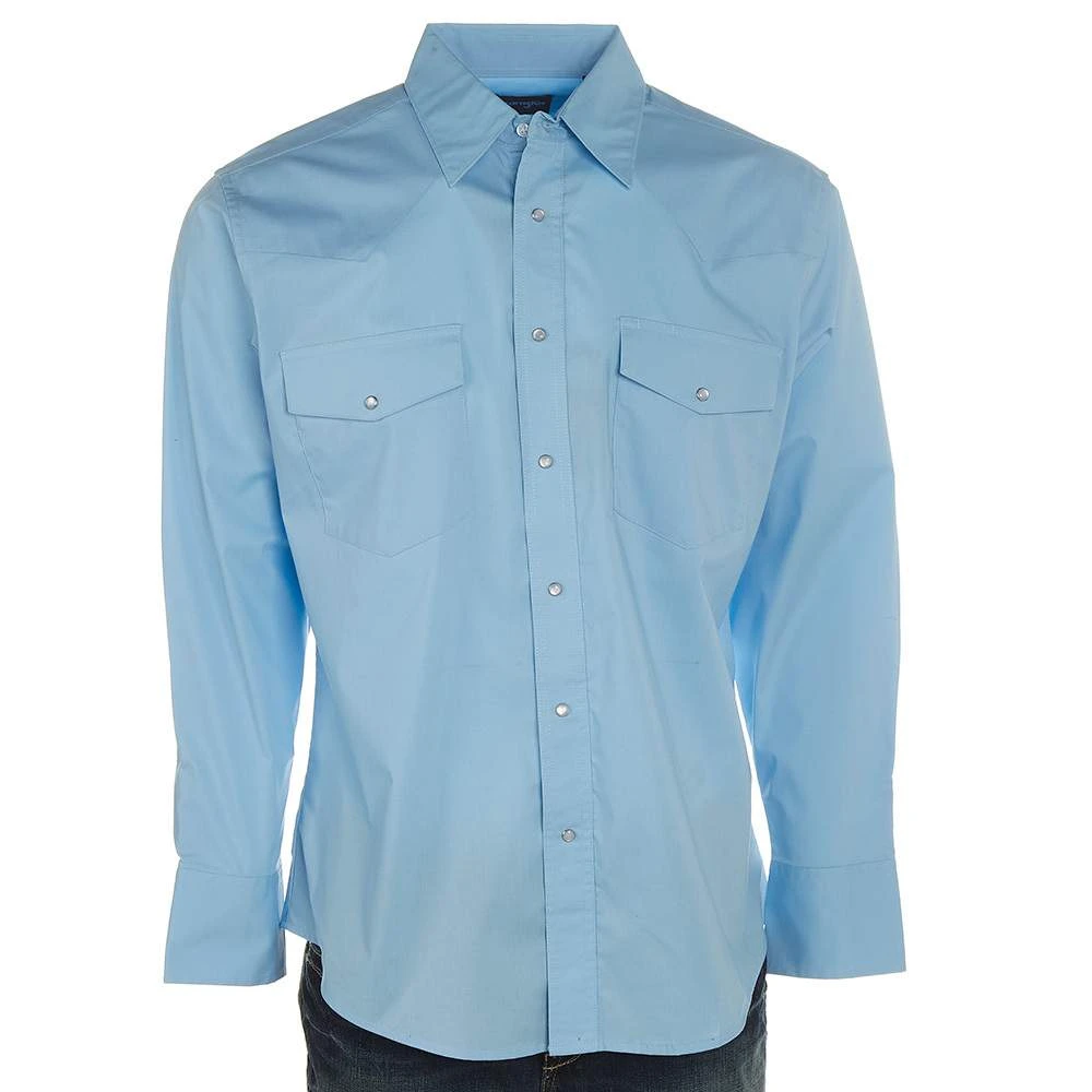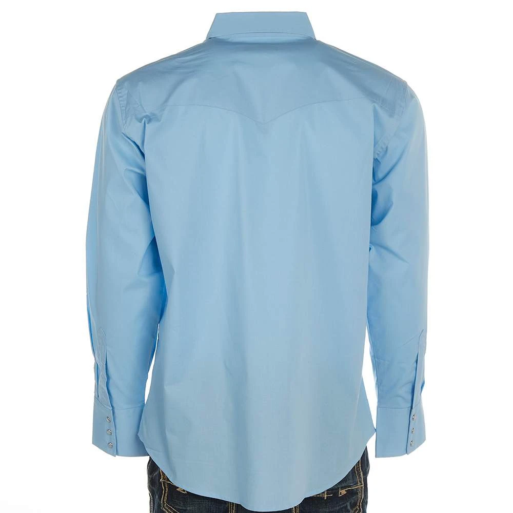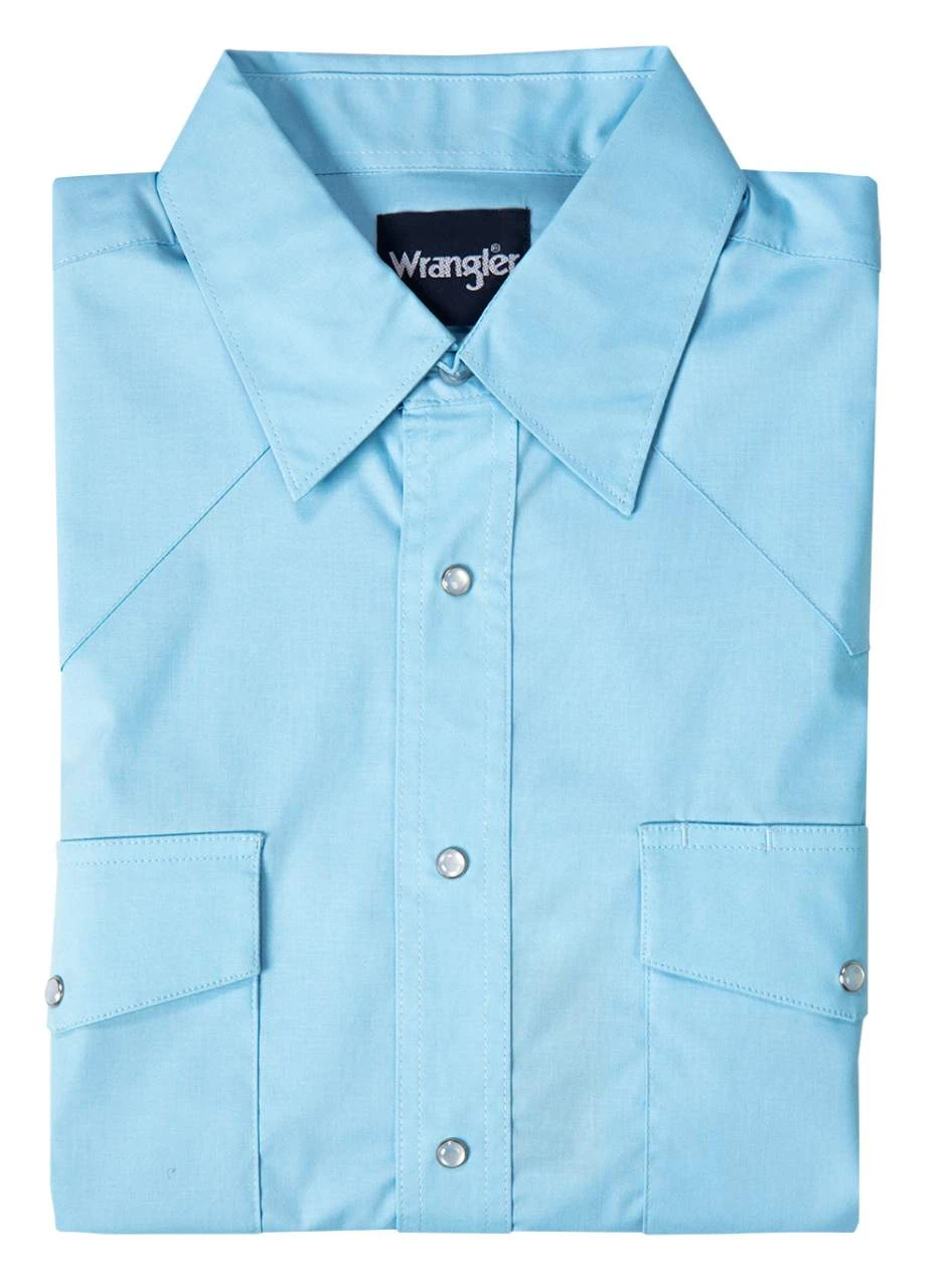 Add some style to your wardrobe wearing our blue solid, long sleeve, pearl snap by Wrangler.