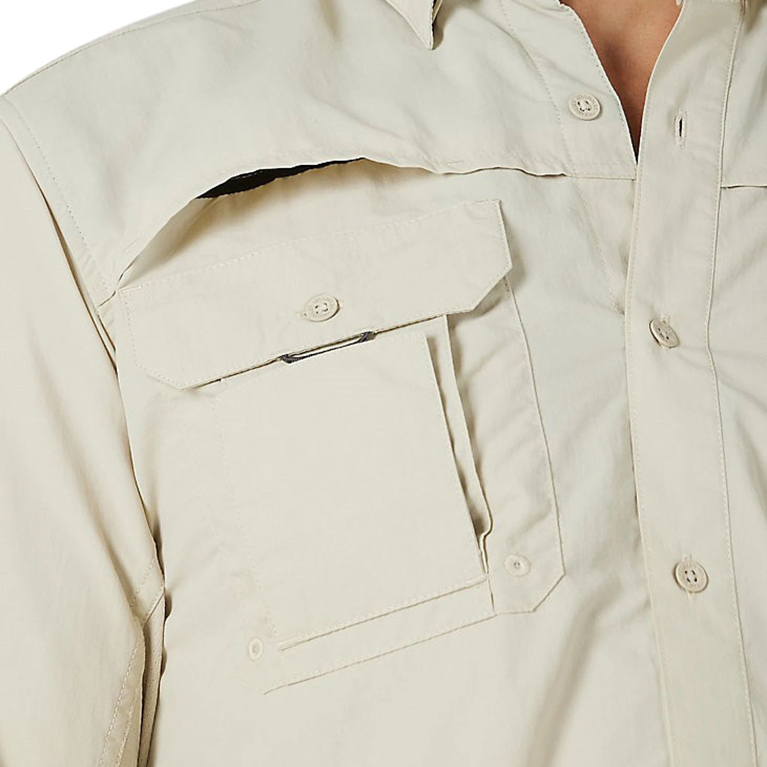 When you’re out in the elements and waiting for something to nibble the end of your line, the ATG Wrangler Anglerâ„¢ men’s long sleeve shirt has you covered. This versatile shirt has everything you need, including a convertible sleeve system exclusive to Wrangler® and handy rod loops to free up your hands when you need them. Our angler shirt also features buttoned flap patch pockets and a utility loop for any essentials you can’t stow in your tackle box. Vents beneath the back yoke offer breathability and comfort no matter what the forecast has in store. Wear it with our men’s utility shorts or angler shorts, and you’ll be ready for fishin’ time.