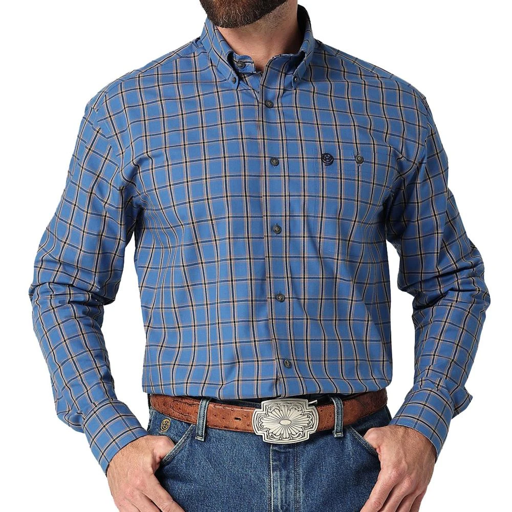 Nothing quite compares to the classic Western look of the King of Country. With a straight-forward style that’s both casual and comfortable, the Wrangler® George Strait button-down shirt provides the perfect opportunity for you to put your own spin on the look of a legend. Every mens George Strait plaid button-down shirt features a button-down collar, single front pocket with our logo embroidery, adjustable cuffs, and a straight back yoke with pleating for a touch of Western appeal. Our mens plaid button-down shirt comes in a wide variety of colorful patterns and sizes. You’re going to love the way it wears just as much as how it looks.