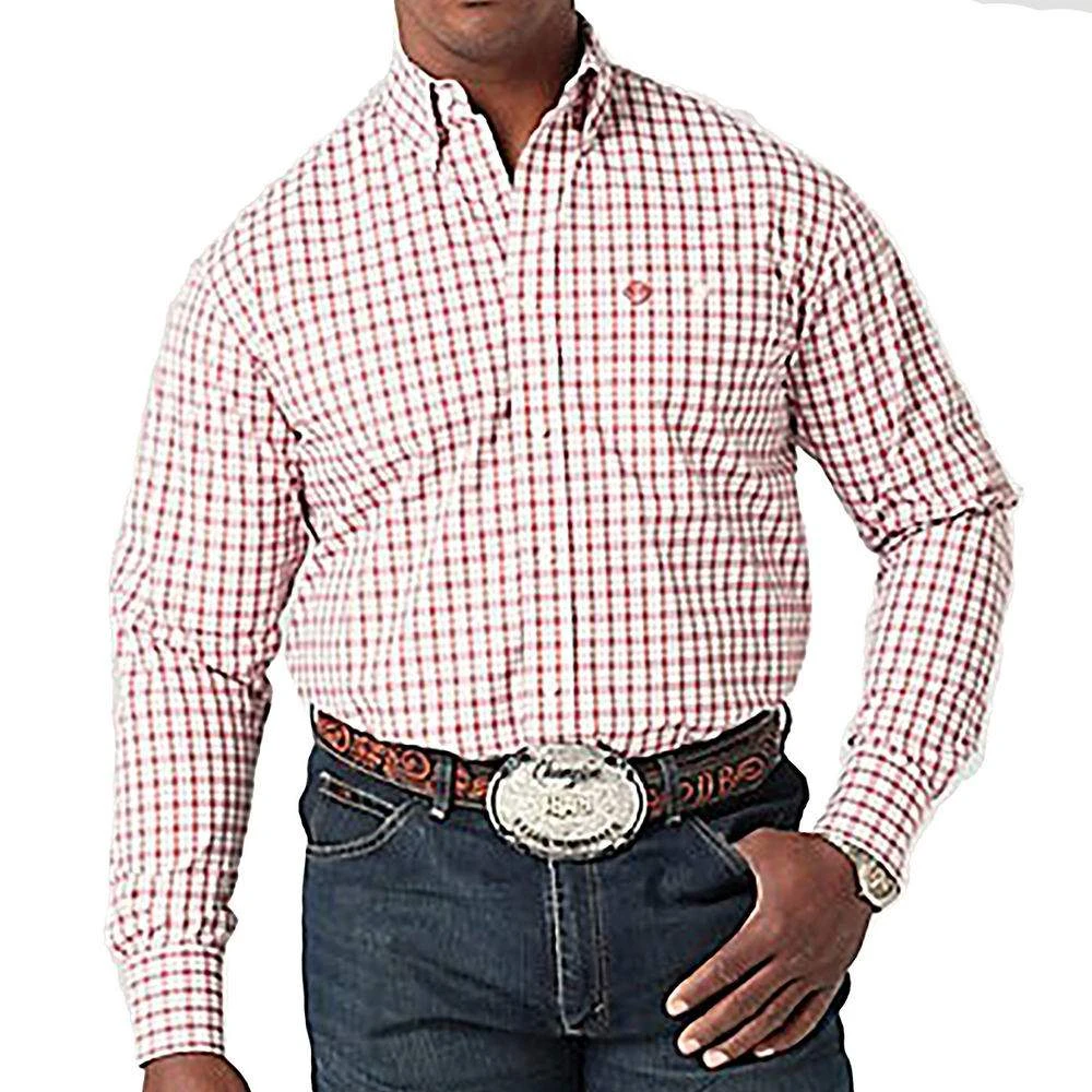 Nothing quite compares to the classic Western look of the King of Country. With a straight-forward style that’s both casual and comfortable, the Wrangler® George Strait button-down shirt provides the perfect opportunity for you to put your own spin on the look of a legend. Every mens George Strait plaid button-down shirt features a button-down collar, single front pocket with our logo embroidery, adjustable cuffs, and a straight back yoke with pleating for a touch of Western appeal. Our mens plaid button-down shirt comes in a wide variety of colorful patterns and sizes. You’re going to love the way it wears just as much as how it looks.